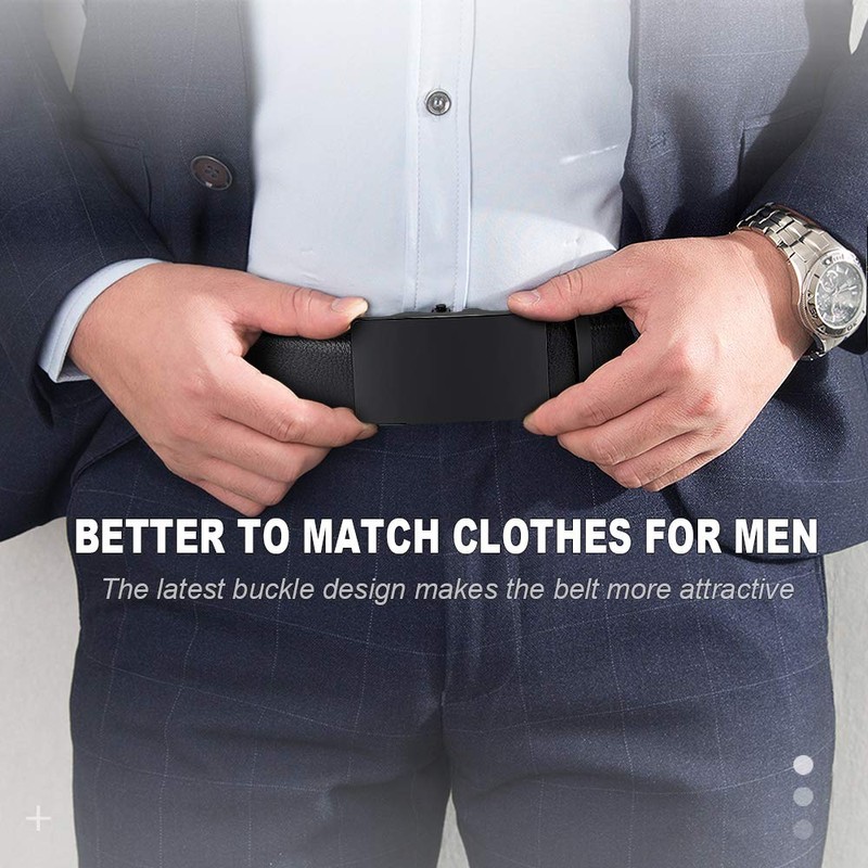 - Great Quality Leather Ourratchet type belt is made of high-quality leather and features great special craftsmanship for long-lasting wear. The belt buckle is plated with a high-strength alloy, which makes it scratch-resistant and durable