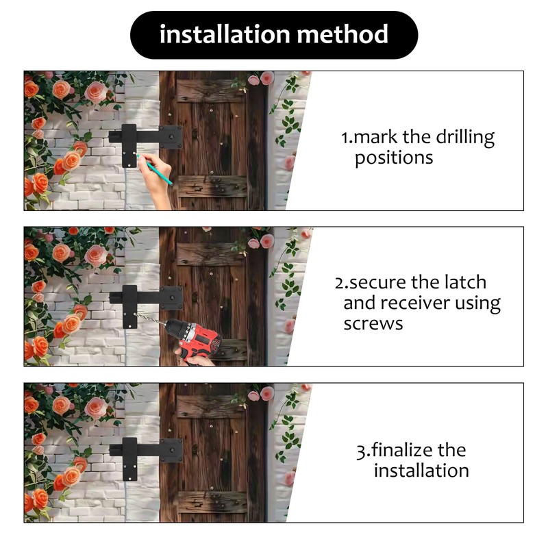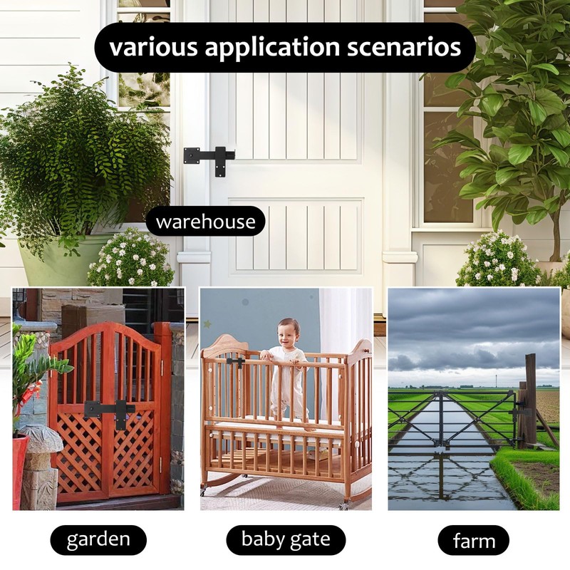 - Versatile application: the door latch is suitable for exterior doors, barn doors, fence gates, sheds, sliding gates, etc. It can also be used on farms, gardens, warehouses, garages and other different places