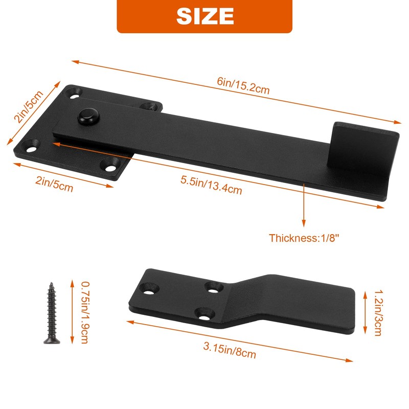 - Set includes: our black door bolt set includes 1 x folding latch, 7 x screws, in which the weight of the lock is 0.53 lbs, the thickness is 1/8 inch, and the size is 6 inches, which is 15 cm