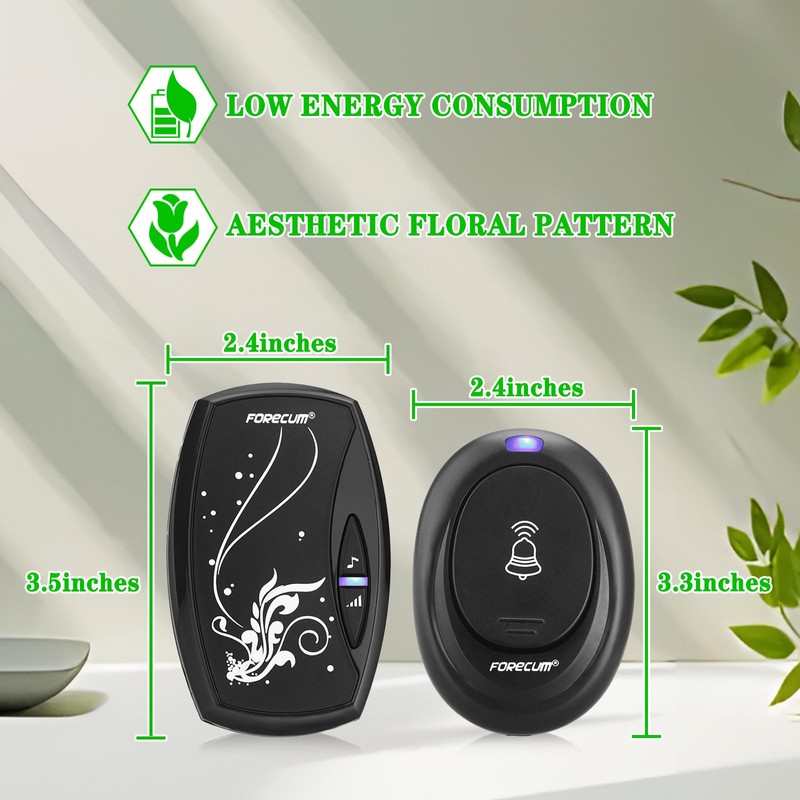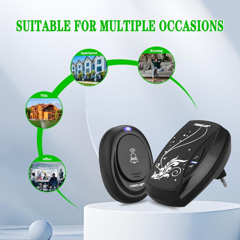 - 🔧【Easy to Install & Use】Our doorbell wireless with chime/ doorbell wireless is easy to install. Just plug the mini wireless door bell receiver into a socket and fix the transmitter on a wall with the accessories provided. Easy to use this wireless doorbell, no need for electrician installation. In case of malfunctions about the doorbell chime, please contact us as soon as possible for resolutions.