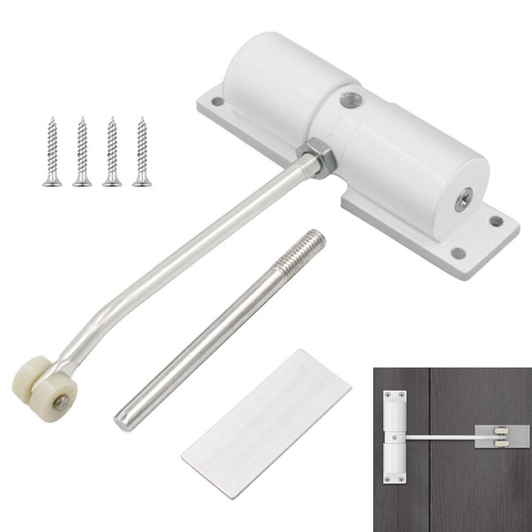 Door Closer,Automatic Door Closer Zinc Alloy Safety Spring Door Closer Adjustable 30 kg Easy Install Auto Door Closer for Home(white)