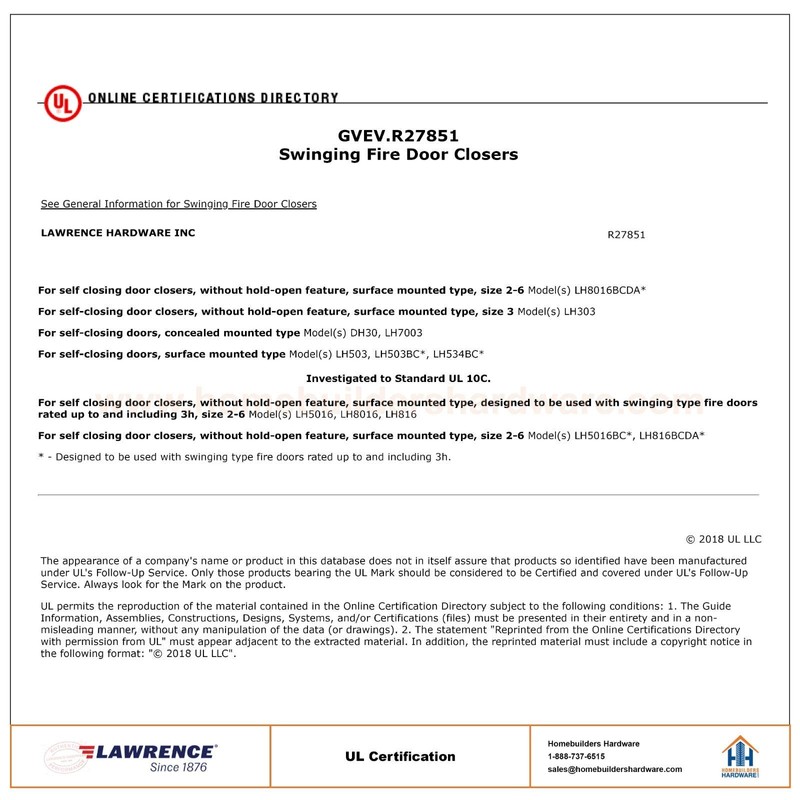 - HOLDS UP TO HEAVY USE - Ideal for high traffic areas, this commercial grade door closer is certified Grade 1 - ANSI/ BHMAA156.4 - the highest possible quality rating available for door hardware. Under third-party testing, the door closer performed like new at over 2 million cycles. Additionally, all components are UL & ADA compliant.