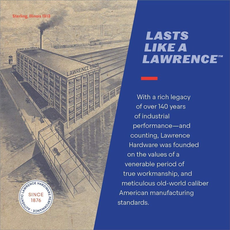 - LASTS LIKE A LAWRENCE - Designed and manufactured to old- world standards, Lawrence Hardware can be trusted to perform well right out of the box and for years to come.