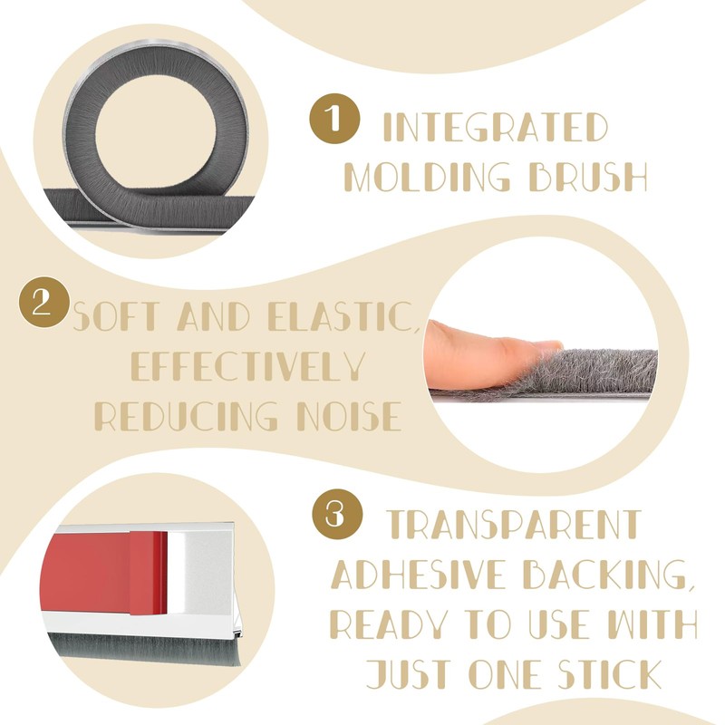 - Advanced Brush Seal Technology:High-density bristles glide seamlessly across floors, eliminating unwanted sounds, friction, and door resistance. Shields all flooring types—including carpets, tile, uneven surfaces, and finished wood—while creating a complete barrier at door-bottom openings.