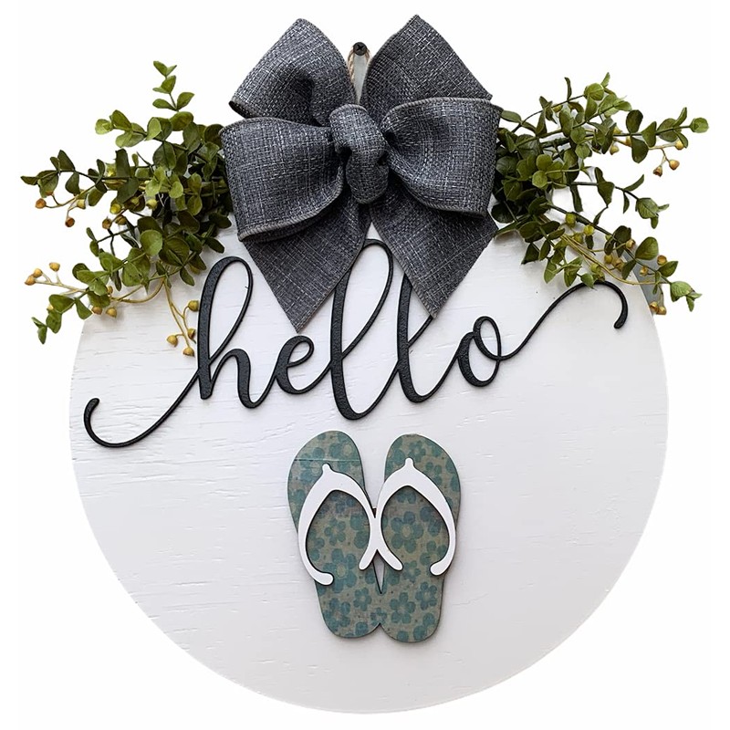 Door Hanger Sign Custom Wreath for Front Door Year Round Welcome Bow Decor + Interchangeable Season Changer Piece 14" Round, Hello Spring Easter Bunny Heart Summer Flower Tulip Butterfly Dragonfly Owl