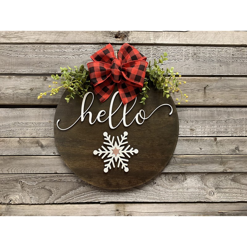 Buy our black METAL OVER-THE-DOOR WREATH HANGER to easily hang your Round Door Sign!