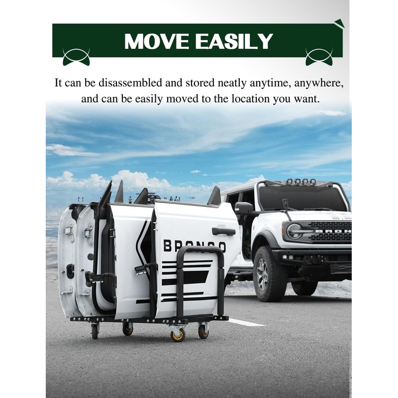 JROAD Door Hanger Storage Rack Bracket Holder Compatible with 2007-2024 Jeep Wrangler JK JL Gladiator JT and Compatible with 2021-2024 Ford Bronco Movable Stand Rack Sliding for 2/4 Door (Black)