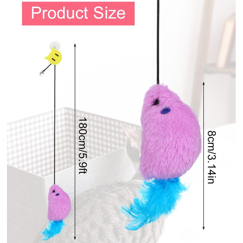 Product Materials: Squeaker, Plush, Elastic Cord, Feathers