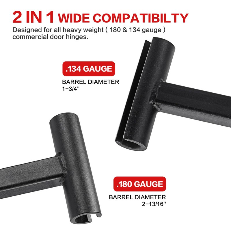- ๐งฐใA MUST-HAVE FOR DOOR REPAIRใThis double-ended door hinge tool combines a dual-size 0.134 gauge and a 0.180 gauge in one, designed specifically for commercial door hinges. It is an indispensable tool for door repairers, and an essential safety tool for schools, shopping malls, garages, and other public places equipped with commercial hinged doors.
