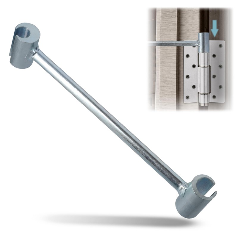 This door hinge wrench provides a quick and easy solution to common door problems such as door sagging, jamming or misalignment.