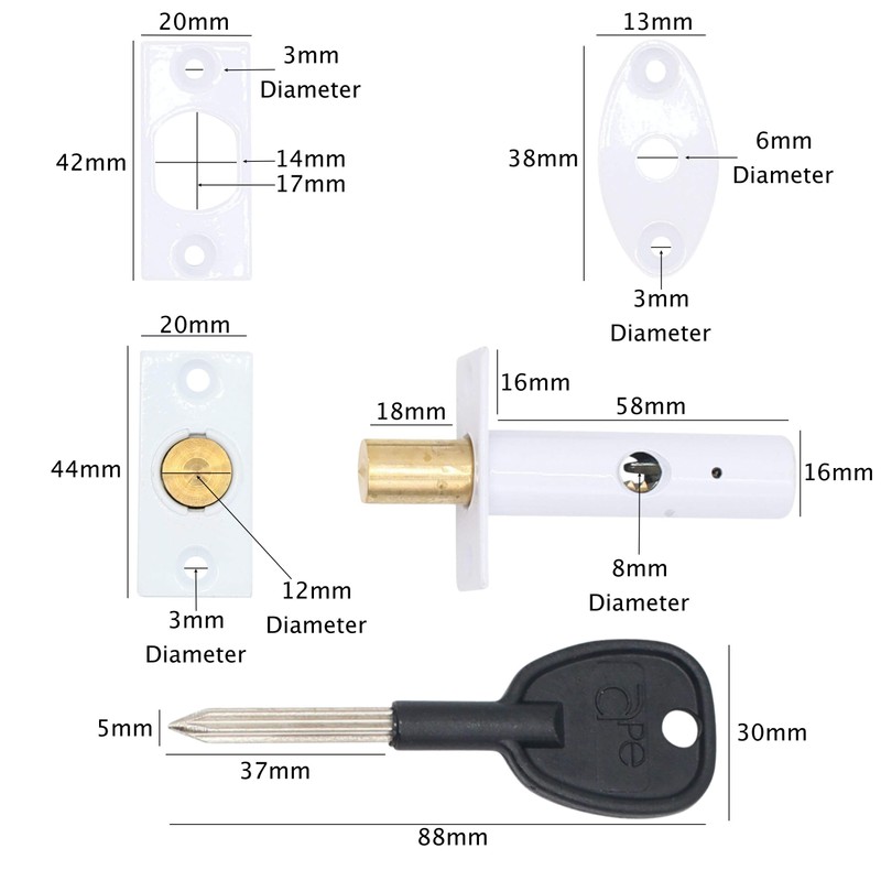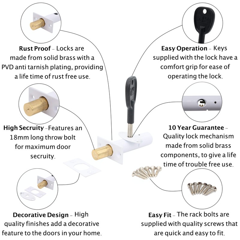 Door Mortice Rack Bolts | White | Pack of 2 + 2 Star Keys
