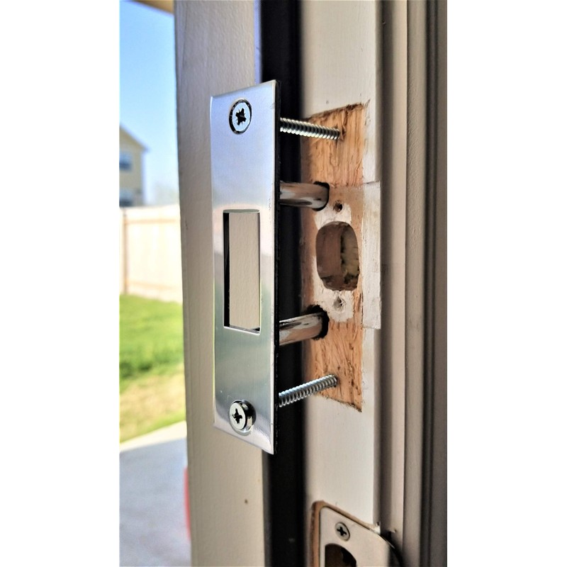 - UPGRADED DOOR SECURITY! Using two 4 1/2" heavy duty posts embedded into the house studs, a lengthened strike plate and longer screws, the Two Post Strike Plate helps reinforce the deadbolt lock and door jamb to help prevent forced entry.