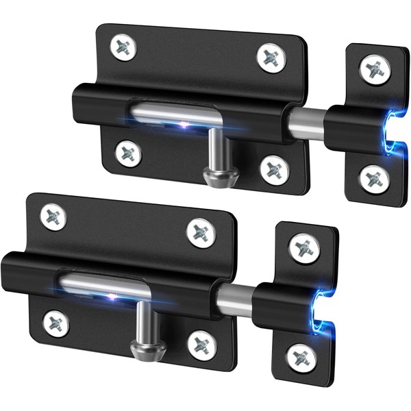 Door Security Slide Latch Lock, 2 Pack Keyless Entry Door Lock, Thickened Heavy Duty Steel Sliding Door Lock, Easy to Install Gate, Slide Latch Lock with 12 Screws
