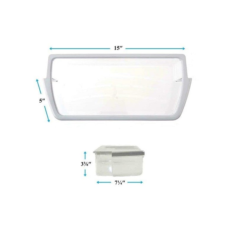 - W10321304 Door Bin Shelf Clear with white band (rim) on top.