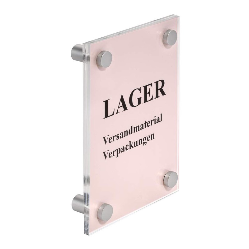 Door Sign Acrylic Glass DIN A6 with Four Spacers / Sign Format 105 x 149 mm / Aluminium Spacer / Double-Sided / Transparent / Glossy / Postcard Size Zeigis®