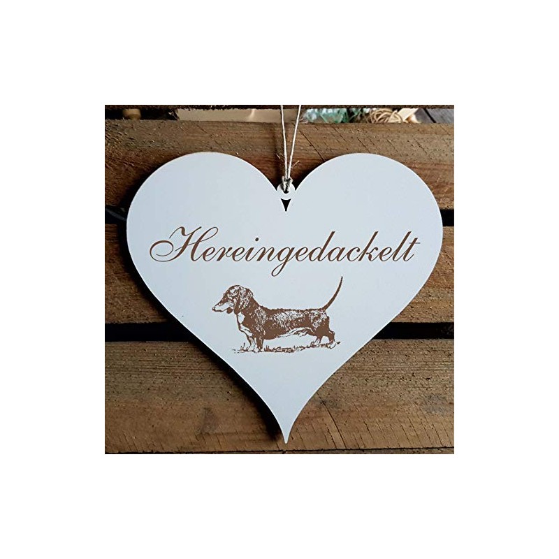 Door Sign "Hereingedackelt" Heart 13 x 12 cm – with Dachshund Motif – Decorat...