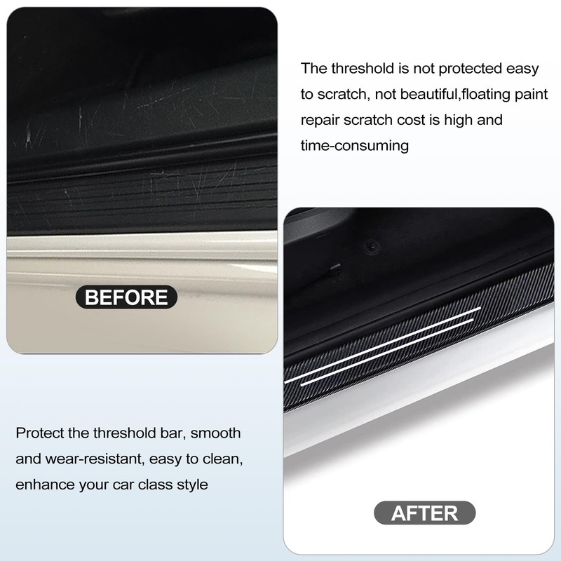 - Scratch resistant: Are you still worrying about scratches on your car? The door sill decorative strip covers the original scratches, prevents serious scratches and abrasion, door sill protector provides protection when entering and exiting the car, and keeps the car surface coating perfect.