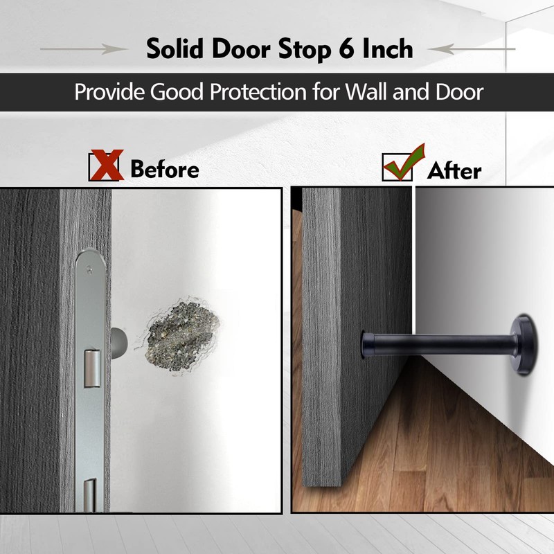 - 【Wide Applications】Modern door stopper with classic black coating serves as a guard for your wall and door, which has no influence on overall beauty of your house. Extra long door stop can be installed on the wood door, steel door, concrete wall, and baseboard in bedroom, kitchen, living room and office.
