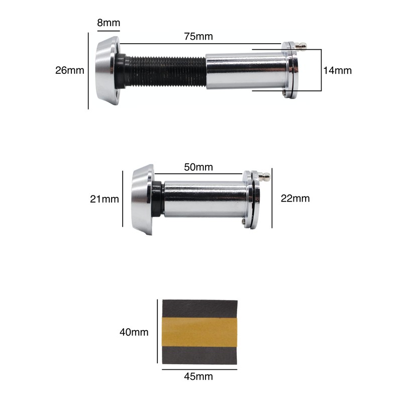 - SIZE: Suit Doors 50 to 75 mm thickness. 200 degree wide angle.