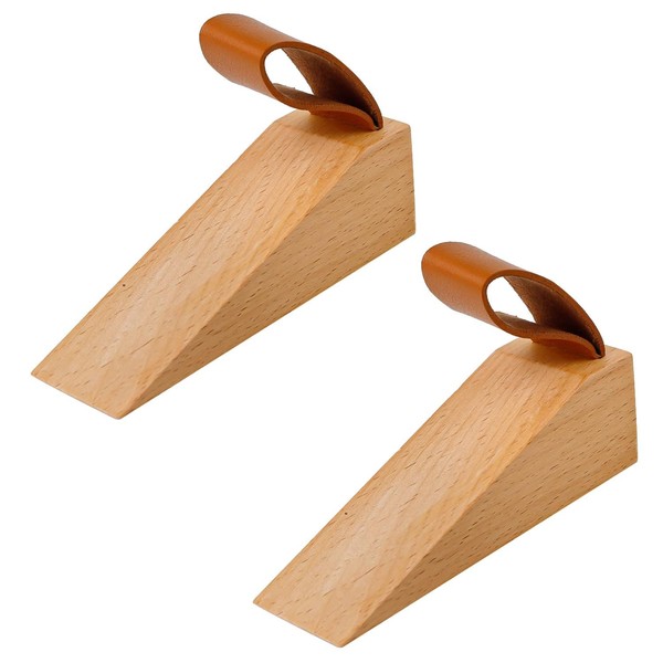 Door Wedge LERANXIN 2 Pack Door Stop, Non-Slip Beech Wooden Wedges, Smooth Gr...