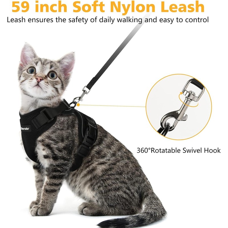 Dooradar Cat Harness and Leash Escape Proof for Walking, Adjustable Vest Harness for Small Medium Cats, Soft Easy Control Jacket, Black, M