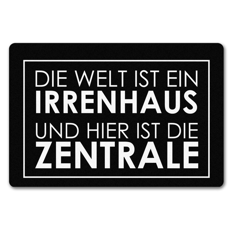 - Box contents: 1x doormat in 40 x 60 cm without border – Die Welt ist ein Madenhaus und hier ist die Zentrale in black