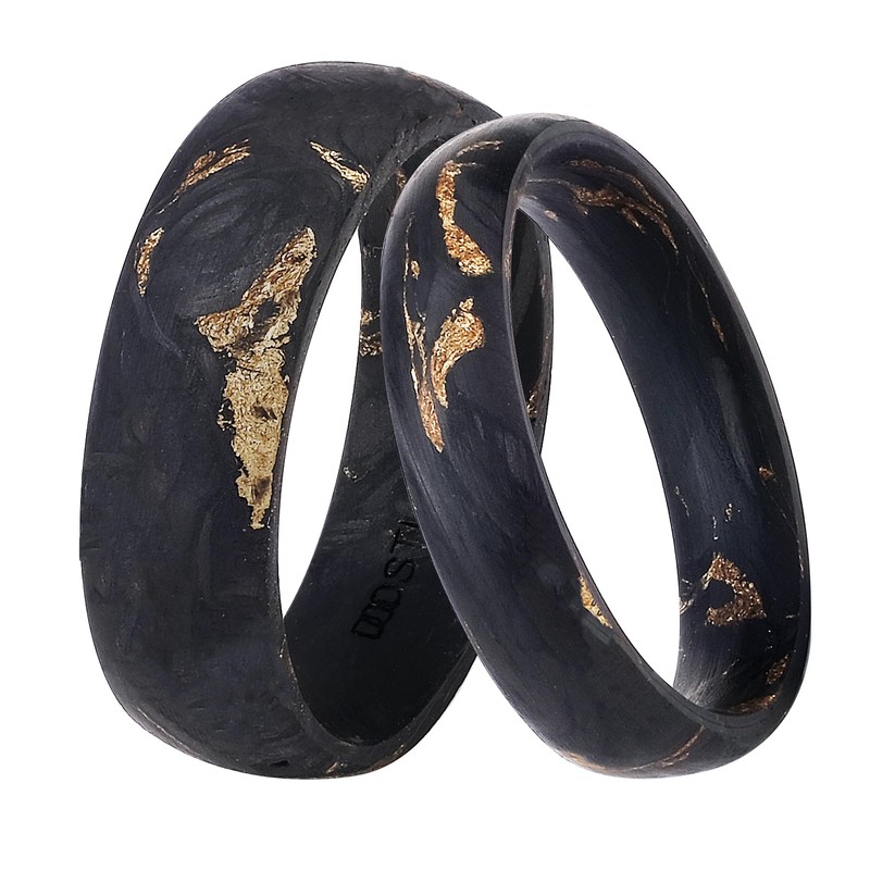- *High-quality materials* - Carbon is a very light yet strong material. The rings are therefore characterised by a comfortable fit. Carbon brushed gold marbled. The sizes available are for women 48, 50, 52, 54, 56, 58, 60, 62 and for men 50, 52, 54, 56, 58, 60, 62, 64, 66, 68, 70, 72.