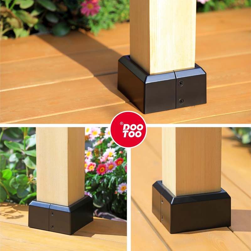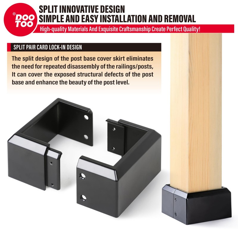 - Smart Design: The deck post skirt features a split design for easy installation—no need to remove the existing base. Its increased height offers better protection for wooden posts while maintaining a sleek, stylish look