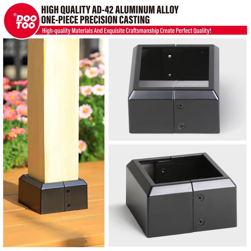 - Premium Material: Deck post base cover is die-cast from aluminum alloy for durability, featuring a high-temperature powder-coated finish (50% matte). Resists corrosion, water, rust, and chalking. Ideal for indoor and outdoor use