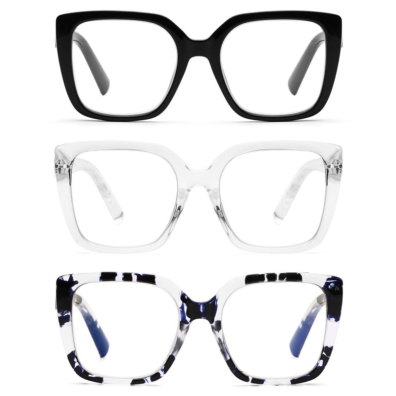 DOOViC 3 Pack Oversized Reading Glasses for Women Blue Light Blocking Square Stylish Computer Readers +1.75 Strength