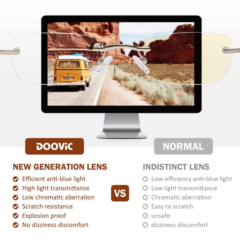 - 【PREMIUM LENSES】- DOOViC blue light blocking readers use new generation premium lenses. Explosion-proof, High Definition, Restore true colors and Durable. Bring you a better vision.
