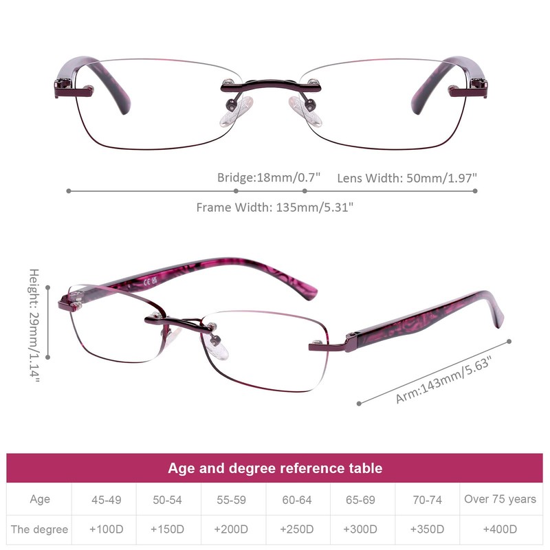 DOOViC 3 Pack Rimless Reading Glasses For Women Lightweight Elegant Blue Light Blocking Readers, Tinted Edge/Spring Hinge 2.25 Strength