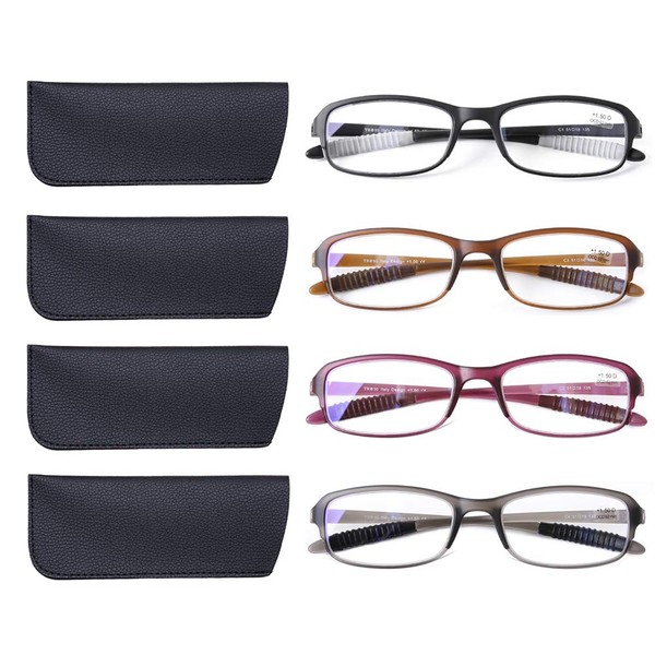 DOOViC 4 Pack Computer Reading Glasses Blue Light Blocking Anti Eyestrain Flexible Lightweight Readers for Women Men 1.75 Strength