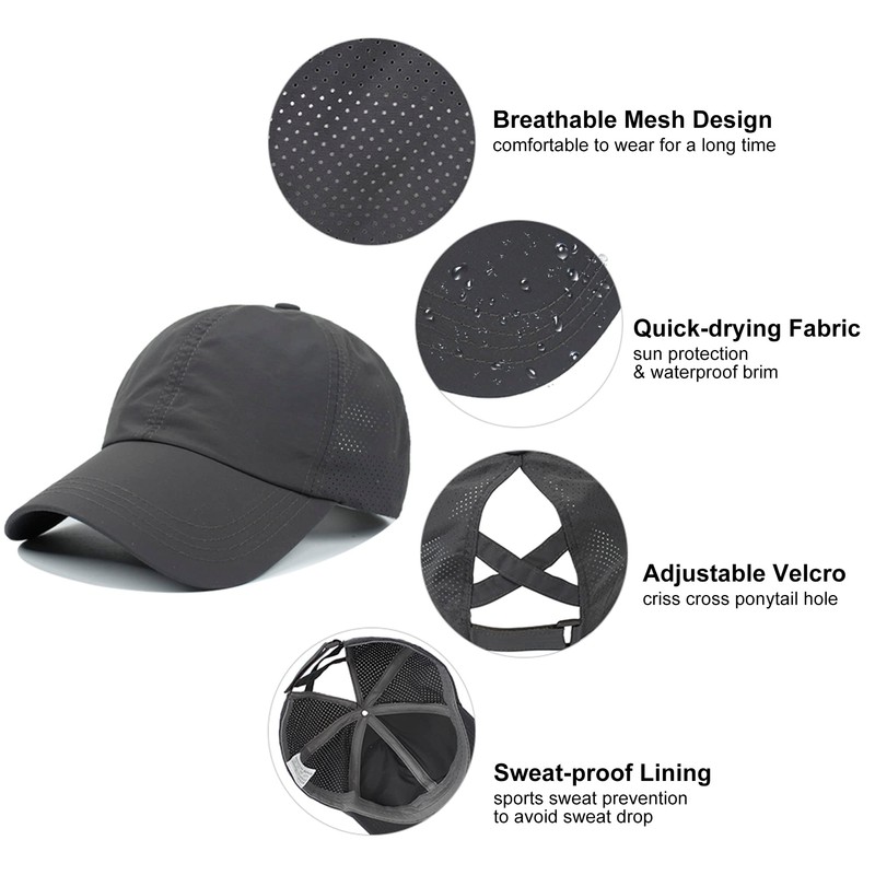 - Material: Women's baseball cap is made of soft, skin friendly, lightweight and breathable fabric, which can quickly dry even when sweating or soaking in water. In addition, with the unique mesh design, the moisture and heat of these hats can be easily discharged, so that you can keep dry and comfortable all day long, away from heat.