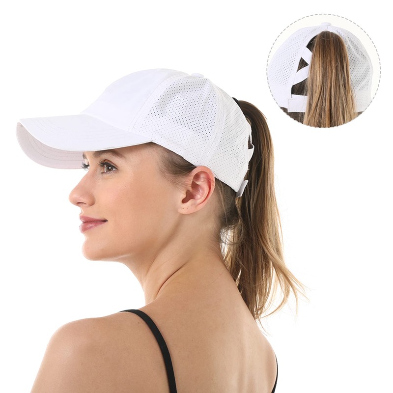 DOOVID Women Baseball Cap Criss Cross Ponytail Baseball Cap Mesh Sports Cap 1 Pack White