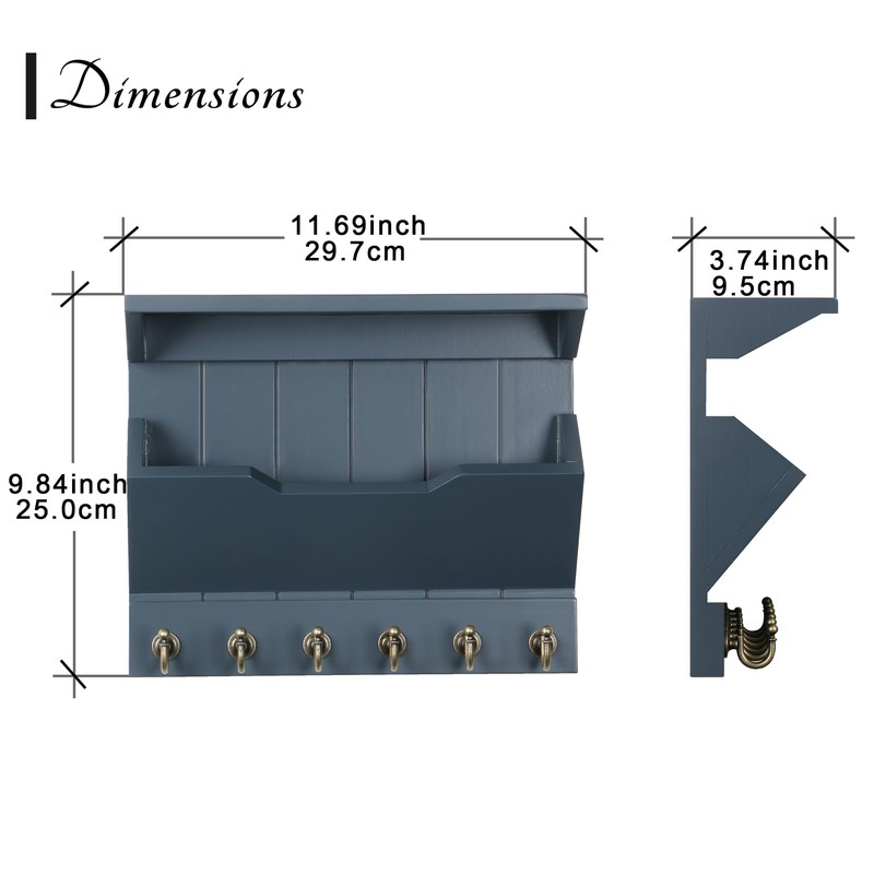 • Versatile organization: Mail and key hoder make the most of your wall space, it can storage mails, letters,envelopes and newspapers. Key racks have 6 metal brass hooks for hanging keys, hats, dog leashes etc.