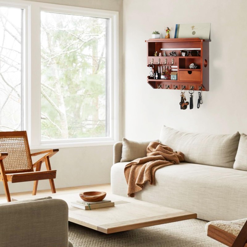 DOPACE Key Holder for Wall, Mail and Key Holder, Mail Organizer Wall Mount with Storage Drawer and 10 Hooks, Easy Installation Keys Holder on Wall, Auburn
