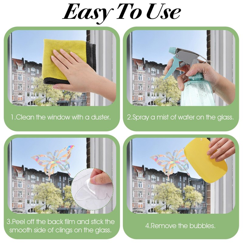 - Premium Butterfly Suncatcher Stickers: Crafted with PVC to prevent fading. Waterproof, temperature-proof. Static cling ensures strong adhesion without sticky residue, is repositionable, and reusable. Precise laser-cut edges resist curling. Sichern Sie sich Ihr langfristiges Nutzungserlebnis