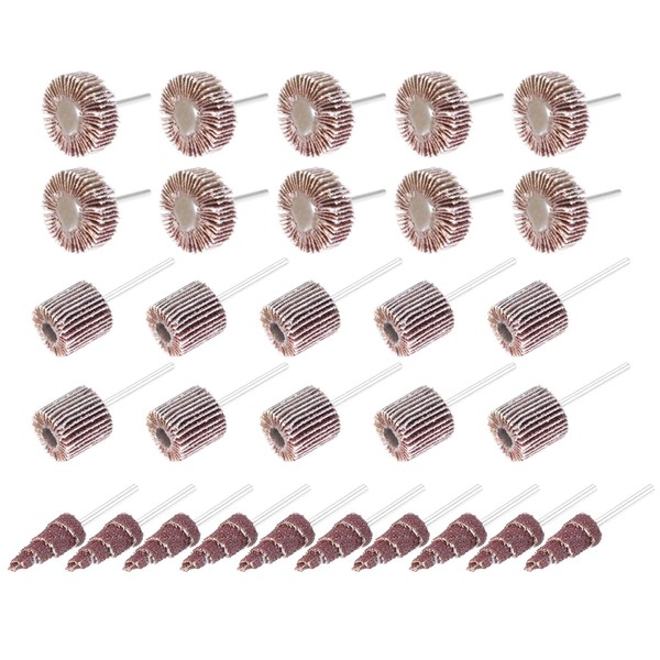 - [PACKAGE LIST]: Package includes 10Pcs 10mm cone shape snading wheel, 10Pcs 20mm cylindrical shape snading wheel, 10Pcs 32mm cylindrical shape snading wheel with 1/8" shank