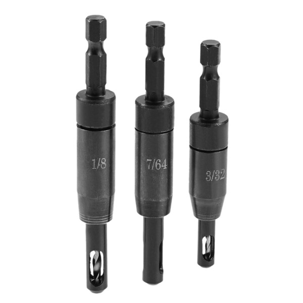 • [SIZE]: This self centering drill bit set includes 3/32", 7/64", 1/8" self-centering hinge drill bit with 1/4" hex shank. Please check your accessory model, drill model to ensure the compatibility