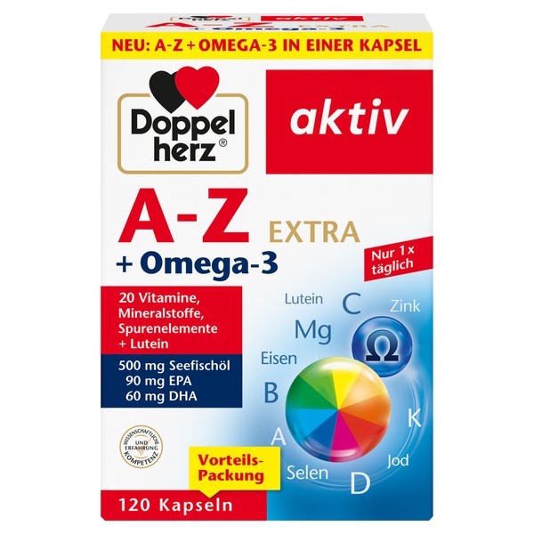 • Multi-vitamin product with Omega 3: Doppelherz A-Z, Omega-3 Extra contains carefully coordinated vitamins, minerals and trace elements from vitamin A to zinc in just one capsule. In addition, the capsule provides omega-3 fatty acids