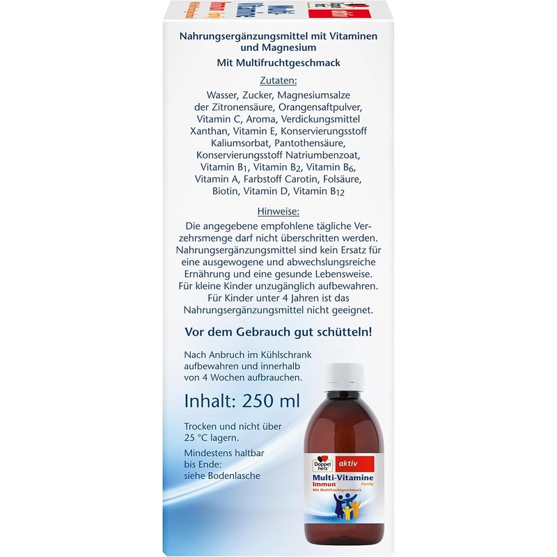 Doppelherz Multi-Vitamins Immun Family - 11 Vitamins + Magnesium Ready to Drink Immediately with Multi Fruit Flavour - 250 ml
