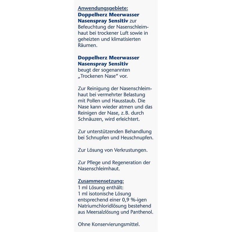 Doppelherz Sensitive Sea Water Nasal Spray - For Cleansing, Moisturising and Care of Dry Nasal Mucosa - 20 ml Isotonic Sea Salt Solution