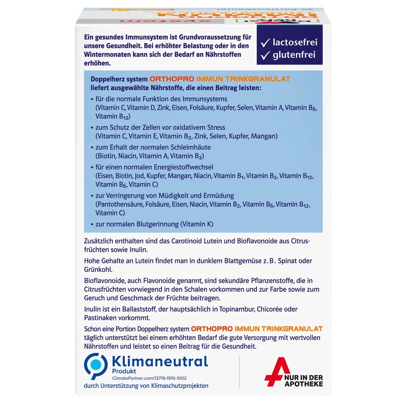 Doppelherz System ORTHOPRO Immune Drinking Granules - Orthomolecular Immune Product - Drinking Granules with 21 Micronutrients - 30 Portion Bags