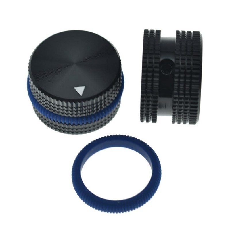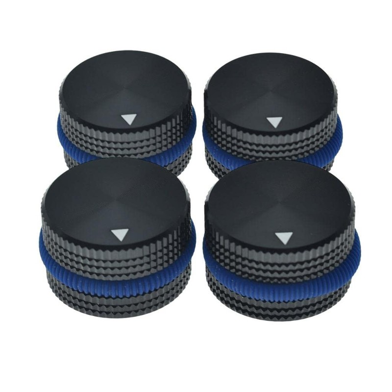 Dopro 4-Pack 25 * 15.5mm Set Screw Style Aluminium Potentiometer Knobs 1/4" Universal Pot Control Knobs with Rubber Ring and Indicator for Guitar/Bass Equipments Black with Blue Ring