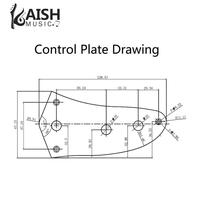 - Lower Control Plate with 3/8"(10mm) control holes and 3/8"(10mm) jack hole for most USA/Mexico Jaguar guitars