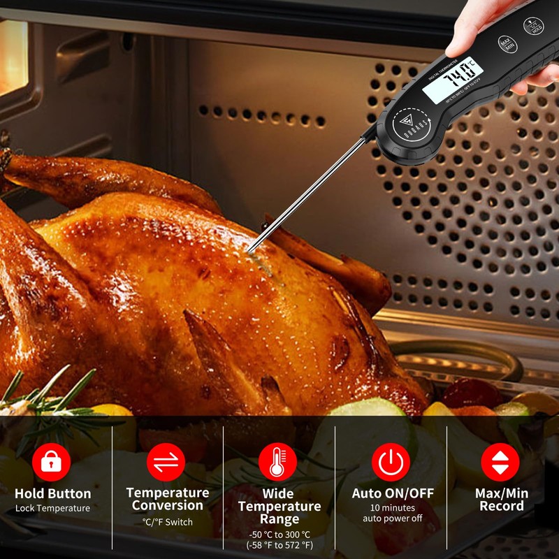 - More Powerful Intelligent Functions: Temperature Lock: Once you reach the ideal temperature, simply press to lock the temperature. No more worrying about accidental changes in the reading; Record Maximum and Minimum Values: All the temperature changes during the cooking process are recorded, helping you summarize experience and making your next cooking even more handy. Easily transform into a cooking master; 10 minute automatic shutdown: An energy saving and environmental friendly expert. The 10 minute automatic shutdown function extends the battery life, contributes to global environmental protection