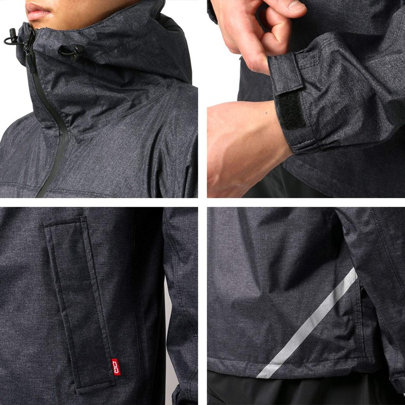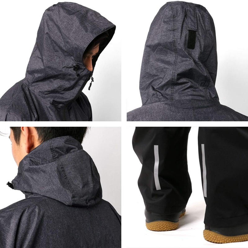 Doqment Men's Rain Wear, Top and Bottom Set, Sizes S-4L, Water Pressure Resistance: 32.8 ft. (10,000 mm), Waterproof, Breathable, Stretch, charcoal (melange grey), S