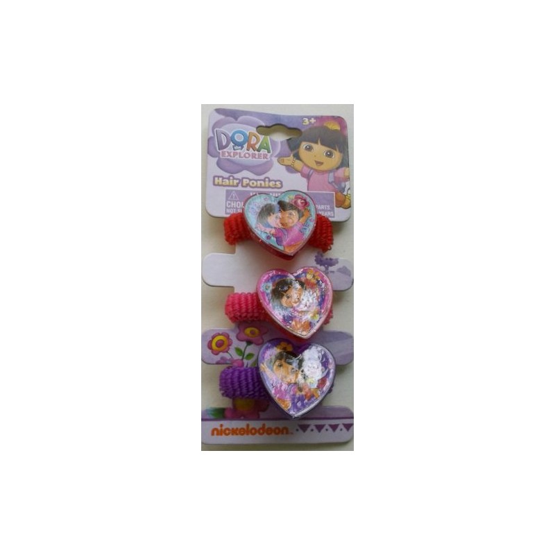 Dora Hair Ponies (3) Large Hearts Pony Tail Holders