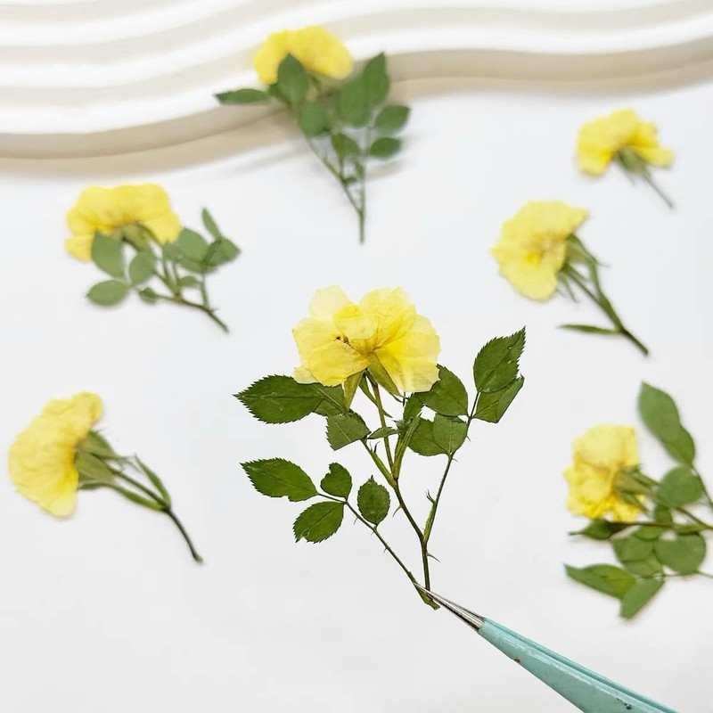 - Pressed flowers:Contains 12Pcs natural yellow dried pressed roses with stems, each size (around 3-5cm), high quality yellow pressed dried flowers with bright colors and different shapes, is the perfect DIY craft material.